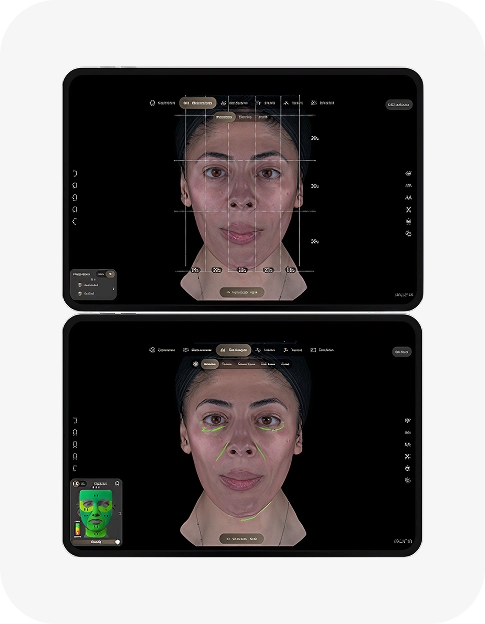 Capture precise proportions, angles, distances, and volume to understand your unique facial structure and tailor your treatment plan accordingly.